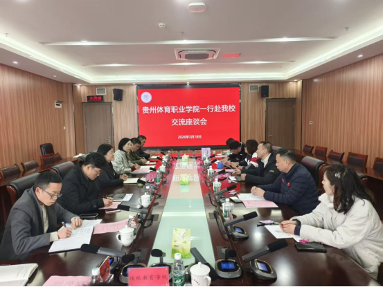 交流发言环节,贵州体育职业学院来访人员,重点就校企合作提出具体问题,如何开展校企合作工作等进行交流,双方与会人员围绕体育康复、教育教学、专业建设、继续教育、实习实训等内容进行了探讨与交流。