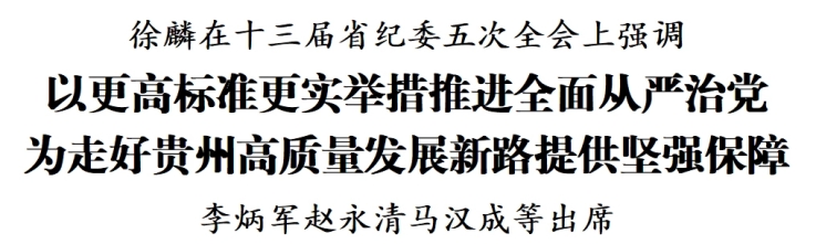 2月1日,十三届省纪委五次全会在贵阳召开。省委书记徐麟出席会议并讲话。他强调,要深入学习贯彻习近平总书记在二十届中央纪委五次全会上的重要讲话精神,进一步贯彻落实习近平总书记在贵州考察时的重要讲话精神,以更高标准、更实举措推进全面从严治党,为走好“十五五”时期贵州高质量发展新路提供坚强保障。