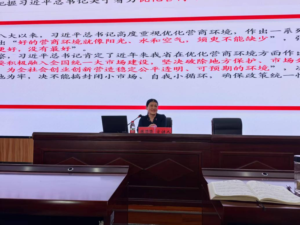为深入学习贯彻习近平总书记在贵州考察时的重要讲话精神,推动学校高质量发展,2025年4月17日下午2点,体育与文旅学院与贵阳康养职业大学科研处、计划财务处、现代教育与信息中心,在综合实训楼9011室举行深入贯彻习近平总书记在贵州考察时的重要讲话精神宣讲会,本次宣讲会由学校副校长、党委委员陈嬝嬝担任主讲。
