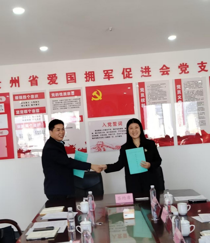 贵州省爱国拥军促进会副会长兼秘书长韩建华主持活动,贵阳康养职业大学副校长陈嬝嬝、体育与文旅学院党委书记欧阳宇星、院长张宏等校方领导、联合创投董事长龙成福等十余家企业负责人出席活动。
