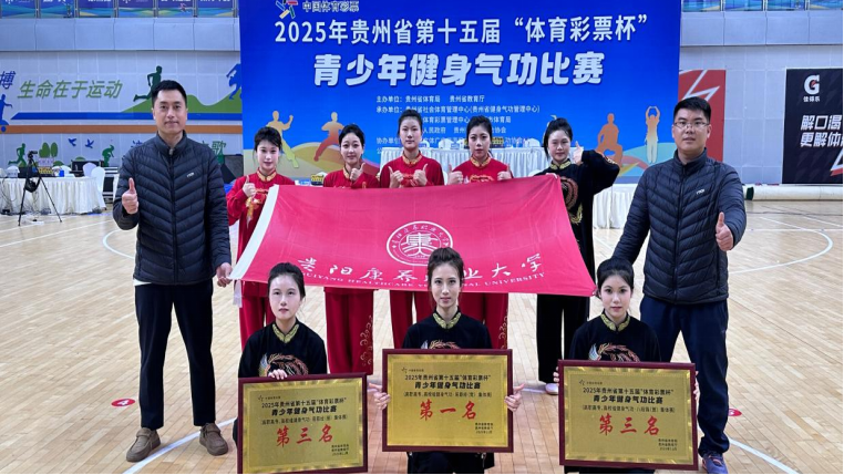 在刚刚落幕的2025年贵州省第十五届“体育彩票杯”青少年健身气功比赛中,我校代表队发挥出色,凭借稳定而优异的表现,共斩获冠军两项、季军四项、第四名一项、第五名一项、第六名一项、第七名一项、第八名一项,并荣获团体总分第二名,在全省43所高校中脱颖而出,充分展示了我校在公共体育教学改革与康养特色融合育人方面的扎实成效。